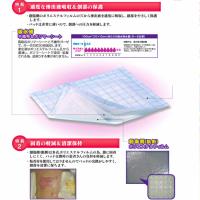 表面材(肌にあたる面)は穴あきフィルムのため、滲出液を適度に吸収し、創に固着しにくい構造です。