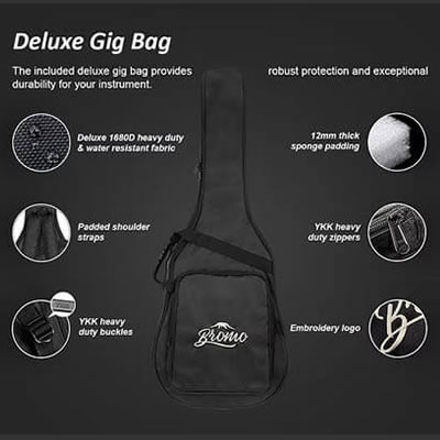ギターには、高品質の頑丈なキャリーバッグが付属しています。このバッグは、優れた耐久性と耐水性を備え、持ち運びも簡単で、スタイリッシュにギターをしっかりと保護します。