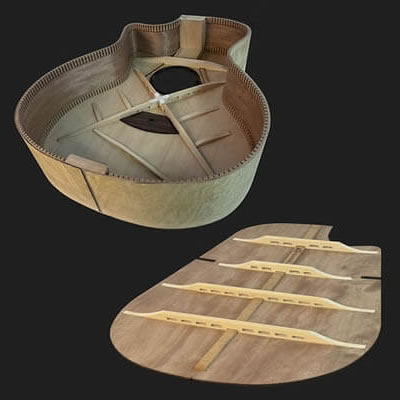 このハンドクラフトギターは、バックとサイドにアフリカの豊かな森林から厳選された、5Aグレードのフレイムド・ムビンギ(学名:Distemonanthus benthamianus)を使用しています。Kowaiまたはアフリカン・モンキー・フルーツとも呼ばれるこの木材は、その独特な木目と豊かなトーンが、楽器の美的魅力を引き立てます。さらに、目を引くビジュアルプレゼンスも備えており、見た目と音質の両面で演奏者を魅了します。あなたの素晴らしい相棒として、いつまでも活躍することでしょう。