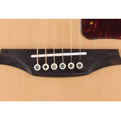 エコフレンドリーな取り組みを反映した本物のボーン製のアッパーナット、ブリッジサドル、ブリッジピンが採用されており、価値感を高めています。これらのパーツは共鳴を改善し、より豊かでクリアなトーンを実現し、音の余韻やダイナミックレンジを向上させます。
