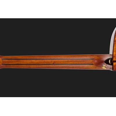BAN2CEは、豊かなトーン、強度、耐久性で知られるAグレードのアマラエボニー製フィンガーボードを特徴としており、スムーズな演奏体験を提供します。フィンガーボードには、ブロモ山をモチーフにしたアバロンインレイとメイプルリングが施され、象徴的な山の形状が、より鮮明に浮かび上がります。この精緻な職人技は、卓越した芸術性を示すだけでなく、楽器全体の品質を引き上げています。