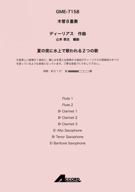 木管8重奏(Fl.2 / Cla.3 / A.Sax. / T.Sax. / B.Sax.)