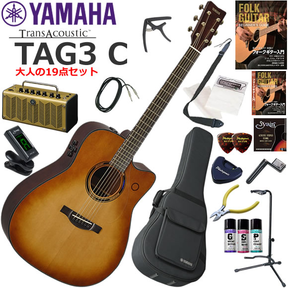 YAMAHA ヤマハ TAG3 C/SDB トランスアコースティックギター 初心者セット レトロなデザインで多機能・高音質のYAMAHA THR5Aが入ってる大人の19点セット