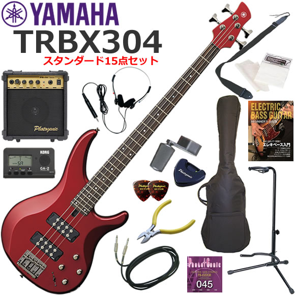 YAMAHA ヤマハ TRBX304/CAR エレキベース 初心者セット 10wアンプが入ったスタンダード15点セット