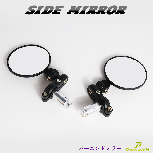 バイクミラー バーエンドミラー 丸型ミラー 22mmハンドル対応 ラウンドバー 直径80mm カスタムミラー【ブラック】 FTR バリオス ゼファー a147