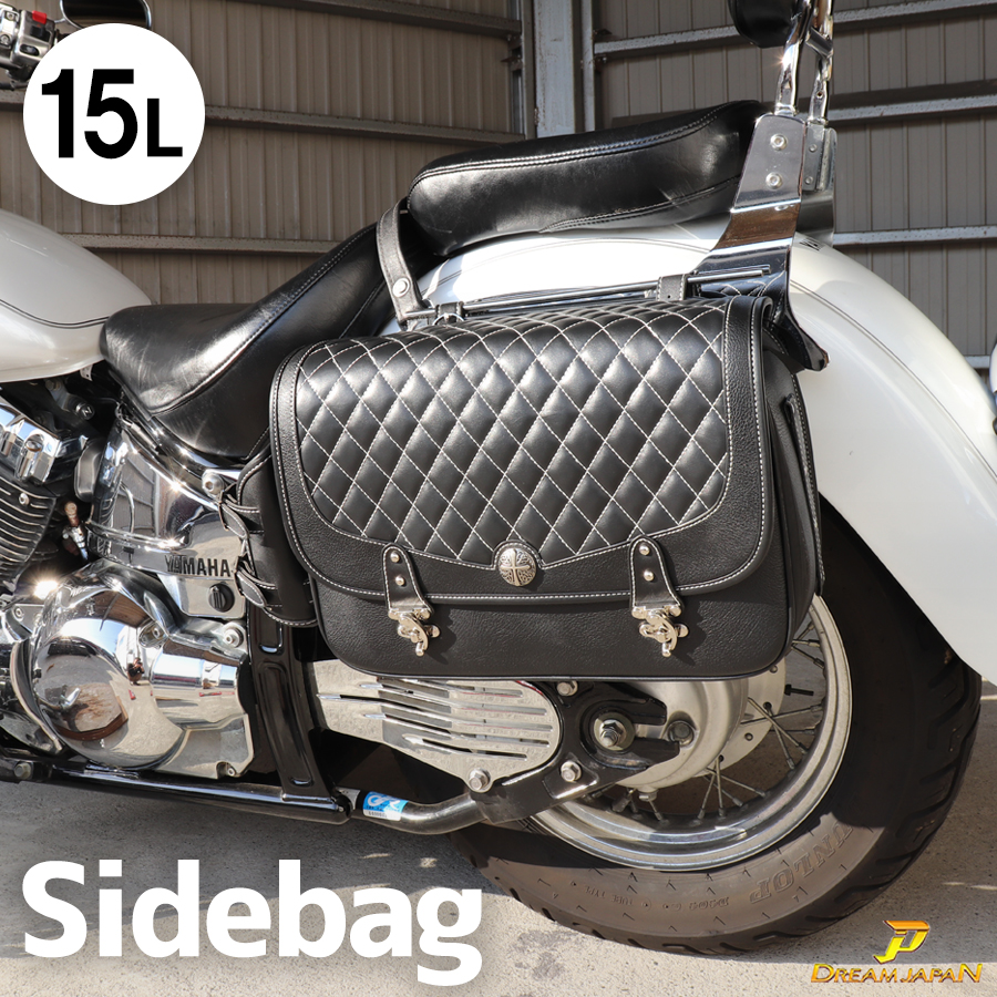 【送料無料】バイク サイドバッグ ダイヤステッチ 大容量15L〜可変量 簡易防水 多機能 ドリンクホルダー レインカバー 簡易ロック付き