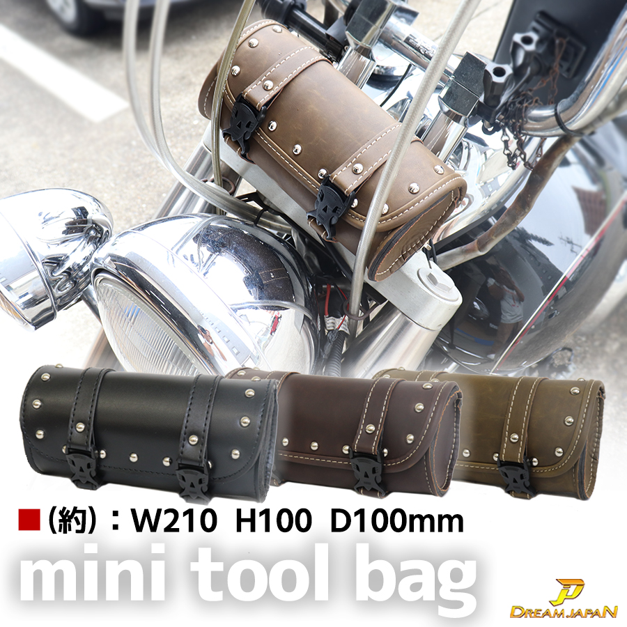 バイク ミニ ツールバッグ 合皮 円筒【 ブラック・ブラウン・ダークブラウン 】/マグナ/ビラーゴ/DS/ツーリング/アメリカン/小物入れ/工具入/フォーク