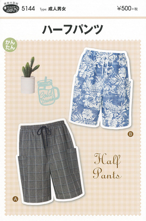 型紙 パターン 成人男女ハーフパンツ No.5144 フィットパターンサン サンプランニング 大人 子供 ベビー 赤ちゃん 作り方 洋裁