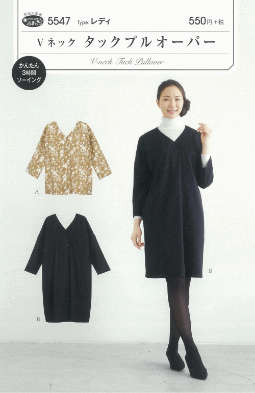 型紙 パターン Vネックタックプルオーバー No.5547 フィットパターンサン サンプランニング 大人 子供 ベビー 赤ちゃん 作り方 洋裁