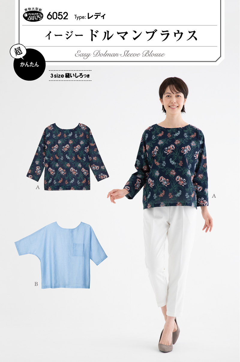 イージードルマンブラウス 6052 型紙 パターン フィットパターン サンプランニング 大人 子供 ベビー 赤ちゃん 作り方 洋裁 手作り 簡単 レシピ