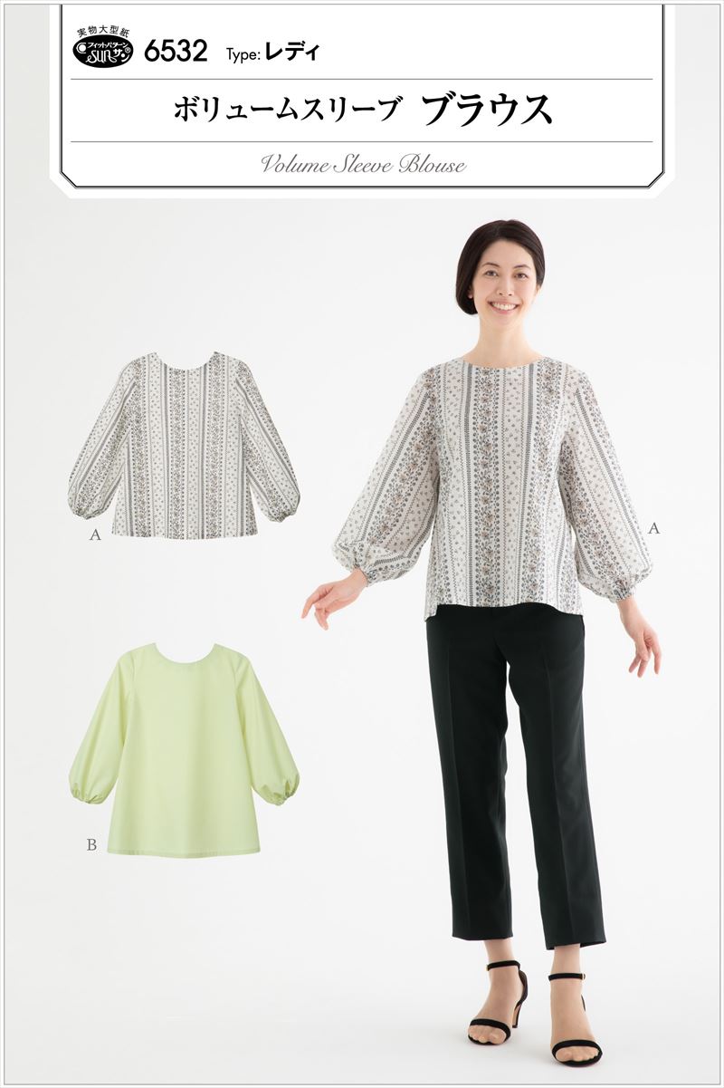 型紙 パターン ボリュームスリーブラウス 6532 フィットパターンサン サンプランニング 大人 子供 ベビー 赤ちゃん 作り方 洋裁