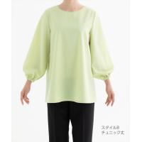 少しフレアーの入った身頃は体のラインを優しくカバーし、すっきりとしたネックラインで膨らんだ袖とバランスが良く着られます。