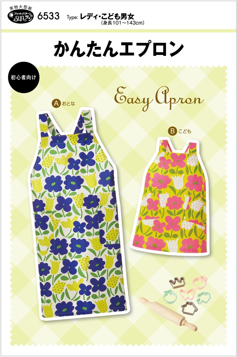 型紙 パターン かんたんエプロン 6533 フィットパターン サンプランニング 大人 子供 ベビー 赤ちゃん 作り方 洋裁
