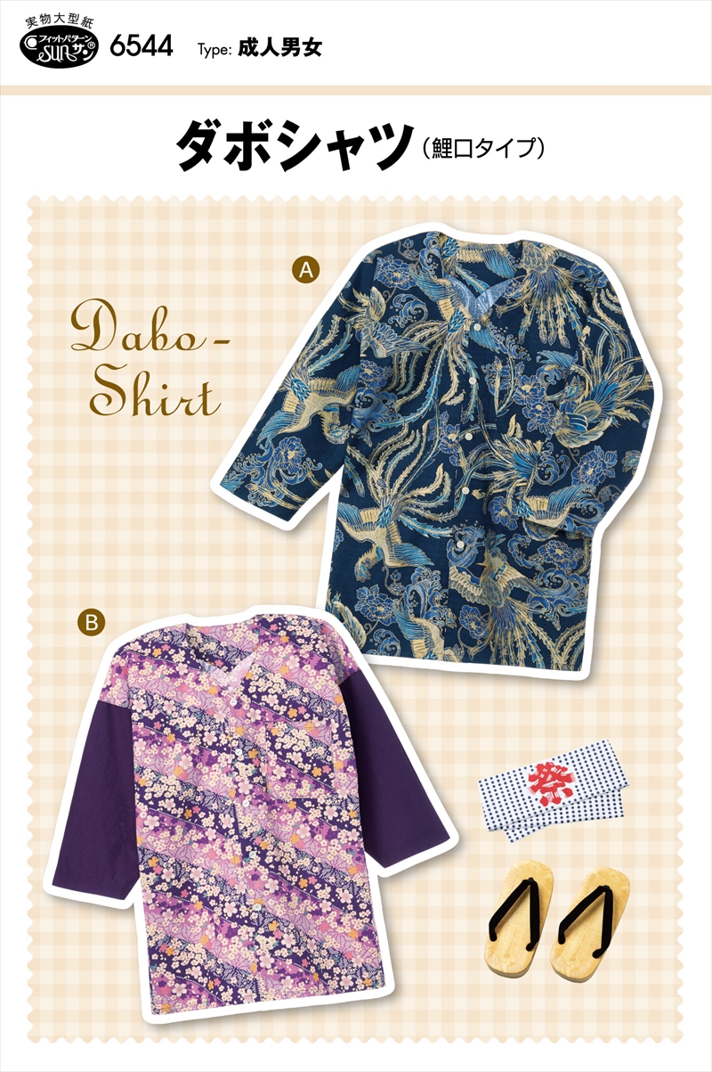 型紙 パターン ダボシャツ(鯉口タイプ)No.6544 フィットパターンサン サンプランニング大人 子供 ベビー 赤ちゃん 作り方 洋裁