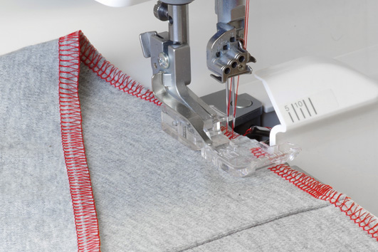 針落ち位置が見やすいので、ニットファブリック付けなどの輪の縫い合わせや、コンビネーションステッチで飾り縫いをするときに使うと便利。