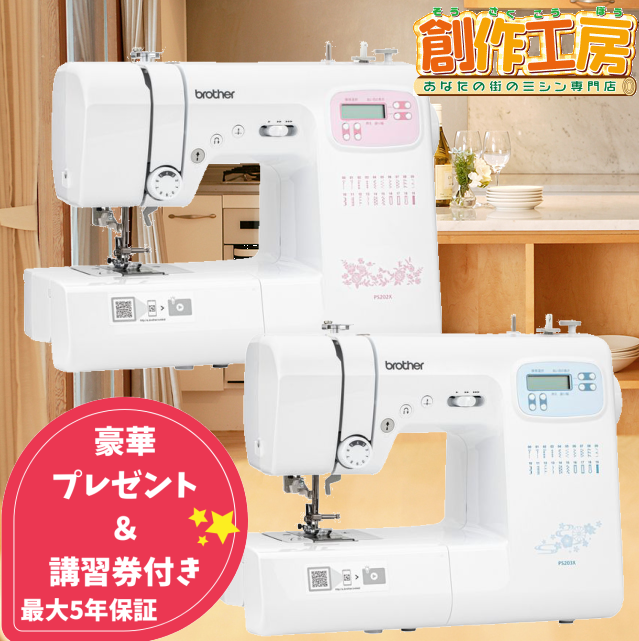 ミシン ブラザー PS202X PS203X CPS42 裁縫 簡単 初心者 コンパクト コンピューターミシン 安い 本体 5年保証 針 ボビン 糸 付き