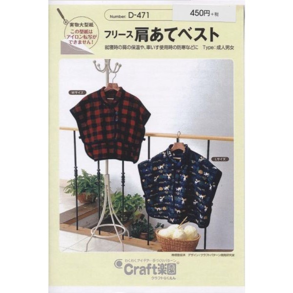 型紙 パターン フリース肩あてベスト D-471 D471 クラフト楽園 サンプランニング 大人 子供 ベビー 赤ちゃん 作り方 洋裁