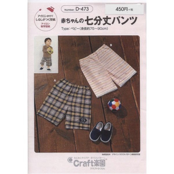 型紙 パターン 赤ちゃんの七分丈パンツ D473 クラフト楽園 サンプランニング 大人 子供 ベビー 赤ちゃん 作り方 洋裁
