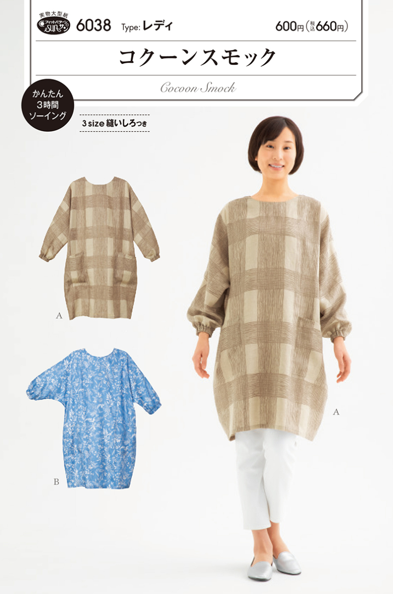 型紙 パターン コクーンスモック(6038) フィットパターンサン サンプランニング 大人 子供 ベビー 赤ちゃん 作り方 洋裁