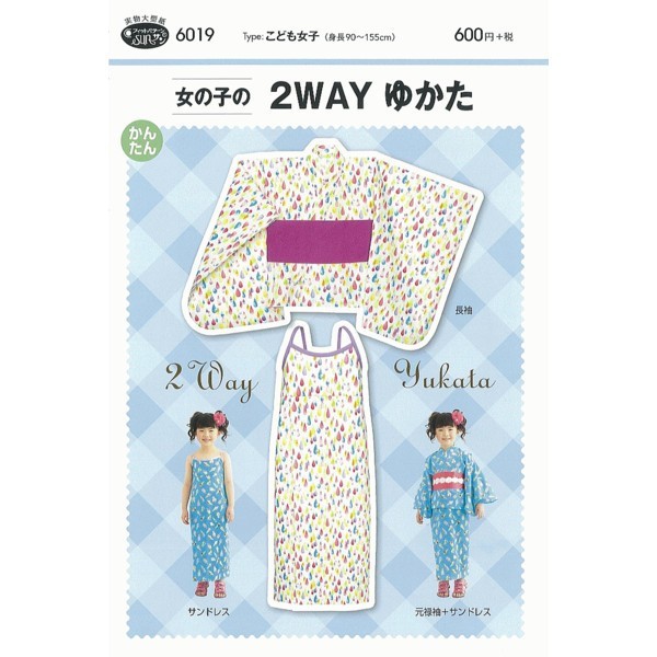 型紙 パターン 女の子の2wayゆかた No.6019 フィットパターンサン サンプランニング 大人 子供 ベビー 赤ちゃん 作り方 洋裁