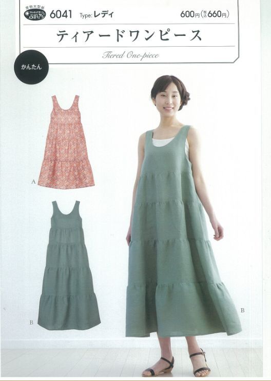 型紙 パターン ティアードワンピース No.6041 フィットパターンサン サンプランニング 大人 子供 ベビー 赤ちゃん 作り方 洋裁