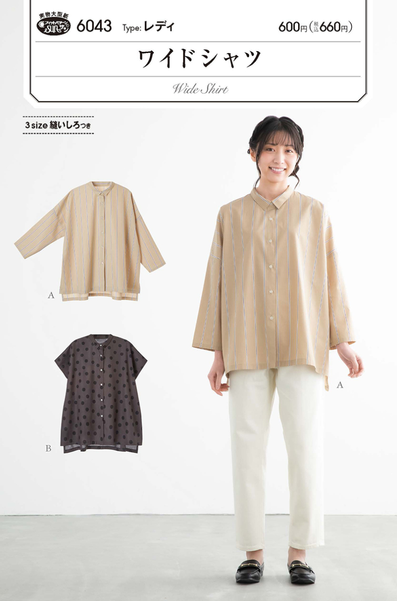 型紙 パターン ワイドシャツ 6043 フィットパターンサン サンプランニング 大人 子供 ベビー 赤ちゃん 作り方 洋裁