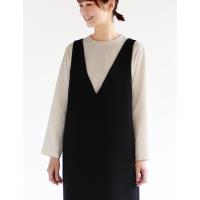 深めのVネックが胸元をすっきりと見せる、身幅にゆとりがあり、身体のラインが出にくい綺麗なIラインで着こなせるシンプルなジャンパースカート。