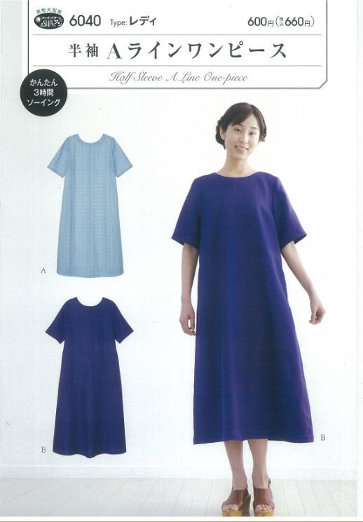 型紙 パターン 半袖Aラインワンピース No.6040 フィットパターンサン サンプランニング 大人 子供 ベビー 赤ちゃん 作り方 洋裁