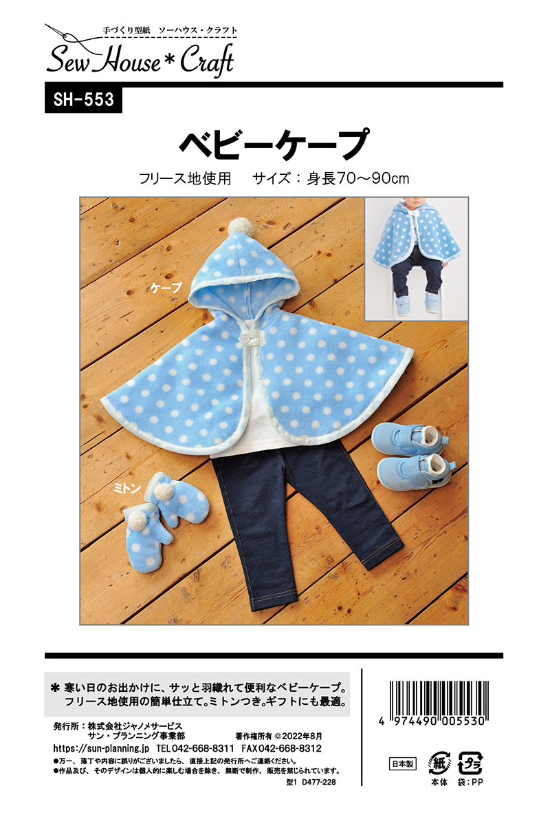 型紙 パターン ベビーケープ SH-553 SH553 フィットパターン サンプランニング 大人 子供 ベビー 赤ちゃん 作り方 洋裁 手作り 簡単 レシピ