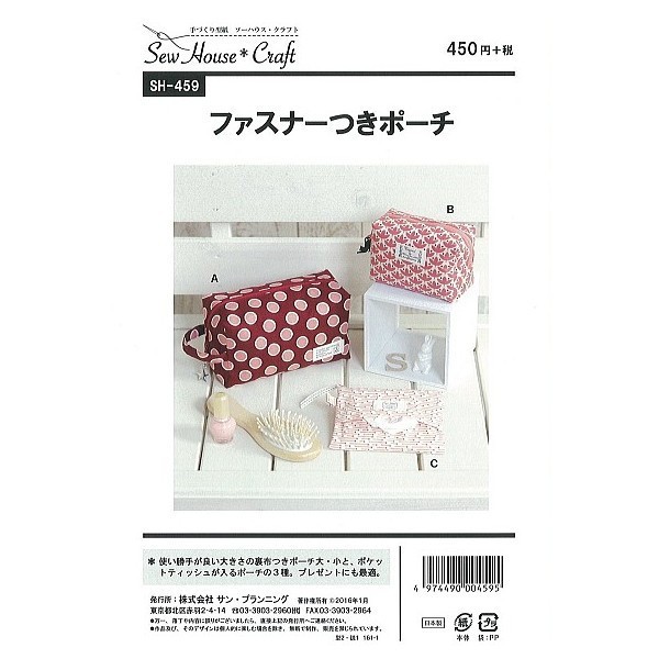型紙 パターン ファスナーつきポーチ SH-459 SH459 ソーハウス・クラフト サンプランニング 大人 子供 ベビー 赤ちゃん 作り方 洋裁