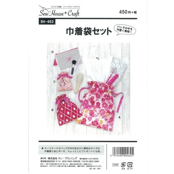 型紙 パターン 巾着袋セット SH-462 SH462 ソーハウス・クラフト サンプランニング 大人 子供 ベビー 赤ちゃん 作り方 洋裁