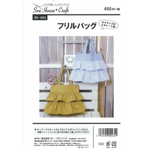 型紙 パターン フリルバッグ SH-464 SH464 ソーハウス・クラフト サンプランニング 大人 子供 ベビー 赤ちゃん 作り方 洋裁 手作りバッグ作り方