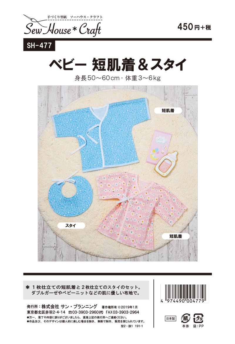 型紙 パターン 短肌着&スタイ ベビー(身長50〜60cm・体重3〜6kg) SH-477 SH477 ソーハウス・クラフト サンプランニング ベビー