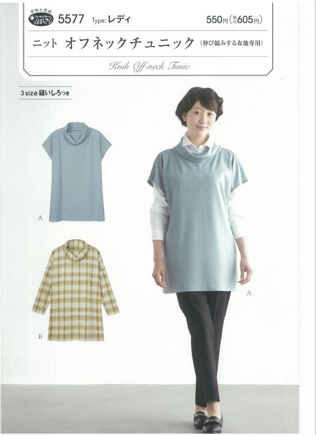 型紙 パターン ニットオフネックチュニック 5577 フィットパターンサン サンプランニング 大人 子供 ベビー 赤ちゃん 作り方 洋裁