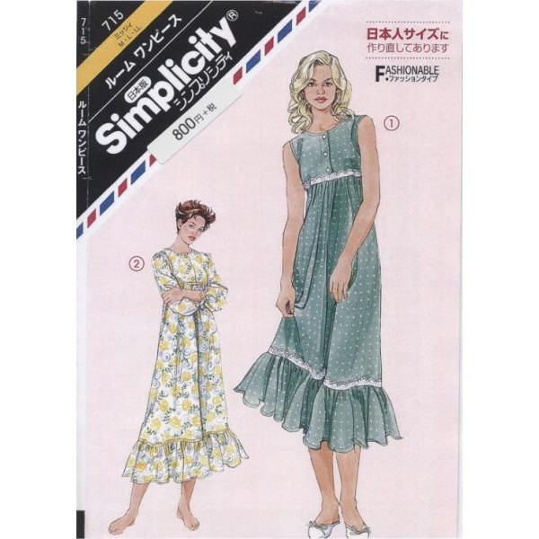 型紙 パターン ルームワンピース 715 ミッシィ M・L・LL シンプリシティ サンプランニング 大人 子供 ベビー 赤ちゃん 作り方 洋裁