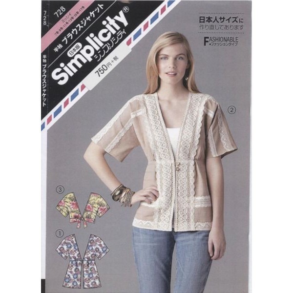 型紙 パターン 半袖ブラウスジャケット 728 ミッシィ シンプリシティ サンプランニング 大人 子供 ベビー 赤ちゃん 作り方 洋裁