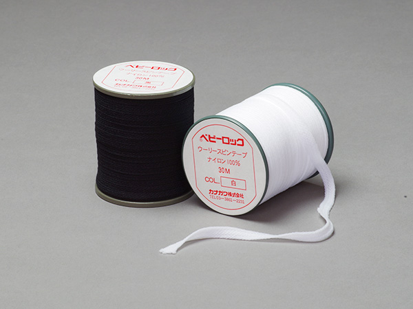 伸びやすい部分に一緒に縫い込むことで、生地が伸びてしまうことを防ぎます。