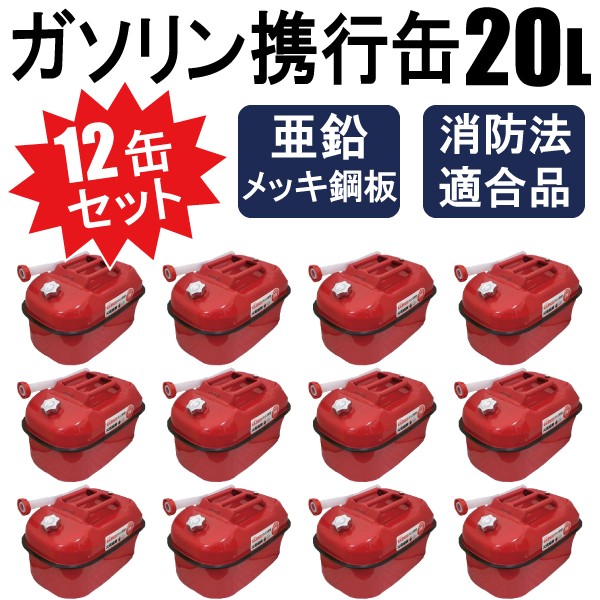 【送料無料】12缶セット ガソリン携行缶 20L 船・ボートなどの給油に 消防法適合品 横型タイプ 亜鉛メッキ鋼板 【3個口】