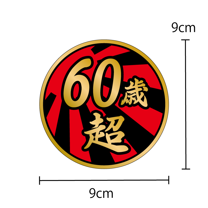 (ゴールド) 面白ステッカー 60歳超え 日章 9cm丸 ネタ おもしろ パロディ