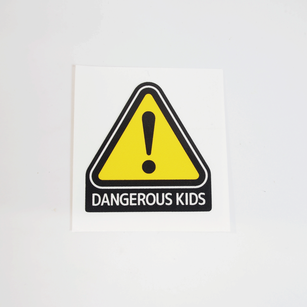 DANGEROUS KIDS 4cm 黒 コーションステッカー コーションラベル ヘルメット 三輪車 自転車
