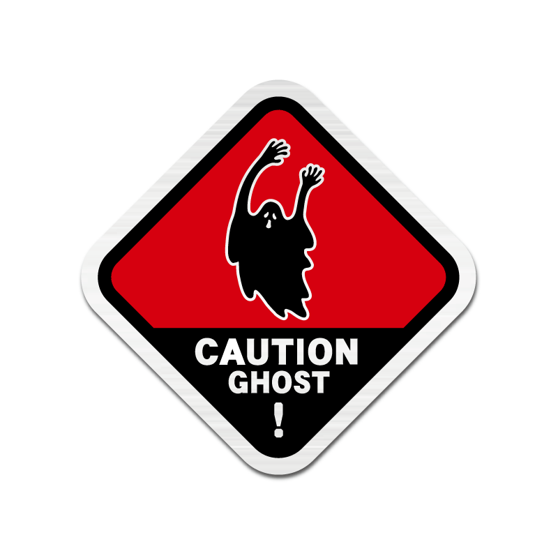 (ヘアライン)おもしろステッカー ゴースト出没注意 6.5cm レッド 車 シール