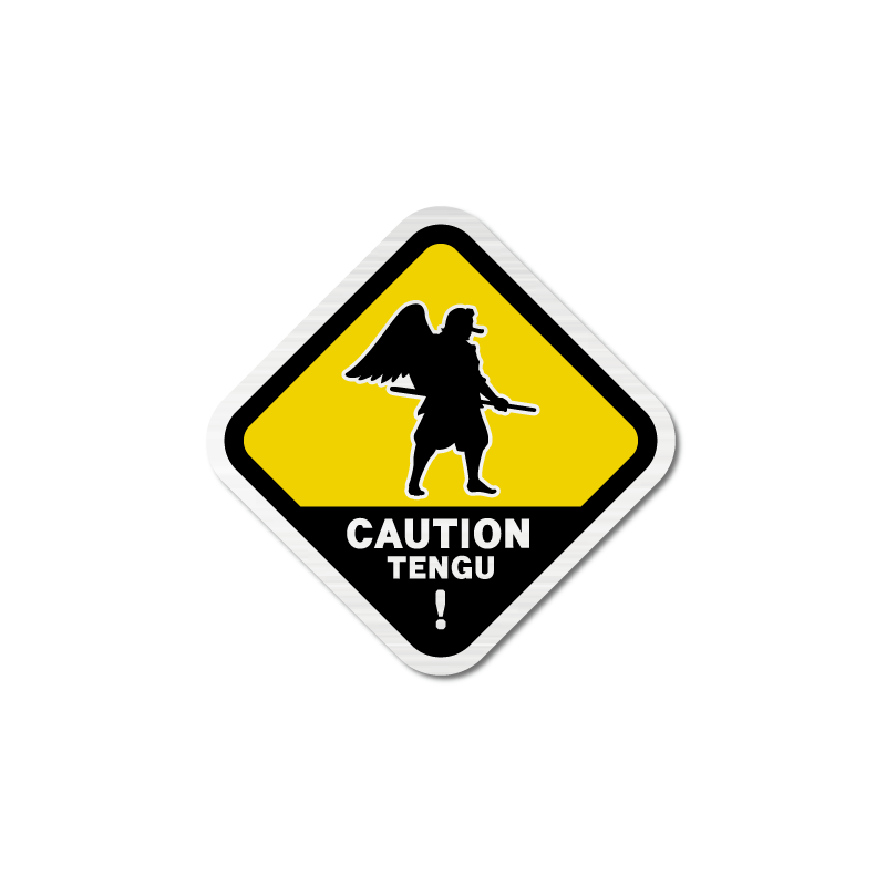 (ヘアライン)おもしろステッカー 天狗出没注意 6.5cm イエロー 車 シール