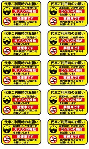 代車 レンタカー 給油お願い 禁煙ステッカー 10枚セット 黄黒 ラミネート加工 暑い車内でも長期使用 代車お願い 8cmサイズ