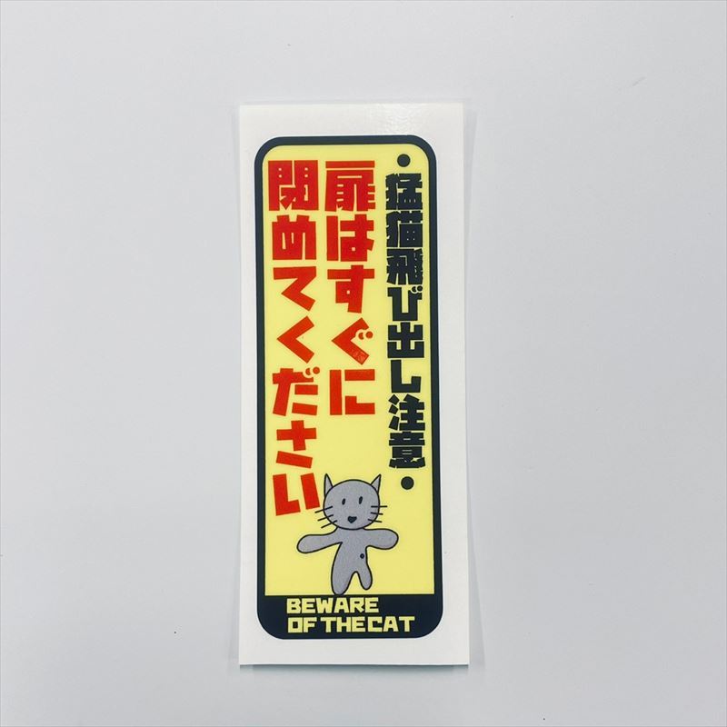 ペット飛び出し注意 ステッカー たて型 8cm 猛猫注意 ペット用品 注意書き 猫グッズ ネコグッズ 玄関 注意喚起