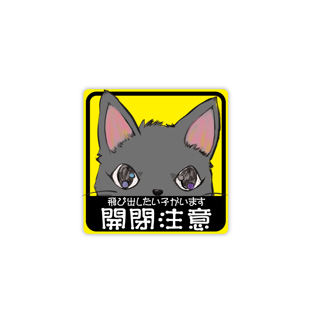 ペット飛び出し注意 ステッカー 7cm (黒猫) ネコグッズ 防犯 注意書き 開閉注意 猫用品 ペット用品