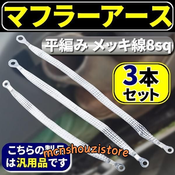 マフラーアース 250mm 300mm 350mm 3 本 セット アーシング 平編み メッキ線 車用品 パーツ 汎用 アース 静電気除去