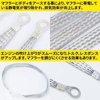 マフラーとボディをアースする事により、マフラーに帯電している静電気が取り除かれ、排気効率が向上します。