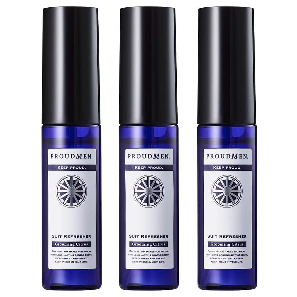 スーツリフレッシャー グルーミング シトラス 携帯用 ミニボトル 15ml×3本セットになります。汗やタバコ、食事のニオイが染み付いたスーツなどを、いつでもどこでもリフレッシュ。シュッとひと噴きするだけで、嫌なニオイを消去して爽やかでほのかな香りが持続します。