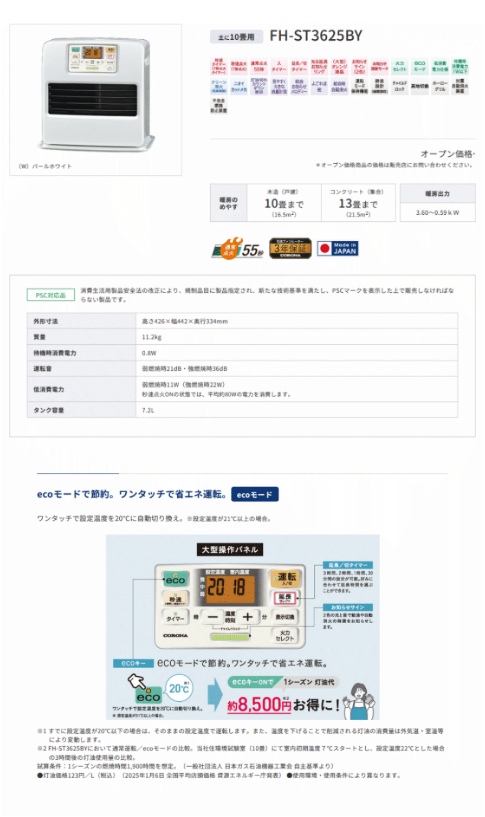 石油ファンヒーター コロナ STシリーズ FH-ST3625BY-W [FHST3625BYW] 主に10畳用 パールホワイト *5* CORONA