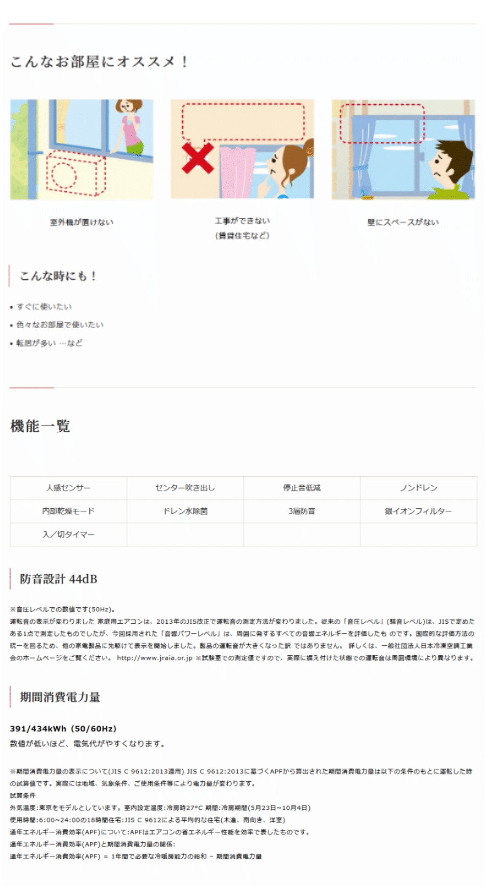 ●期間消費電力量:391/434kWh(50/60Hz)